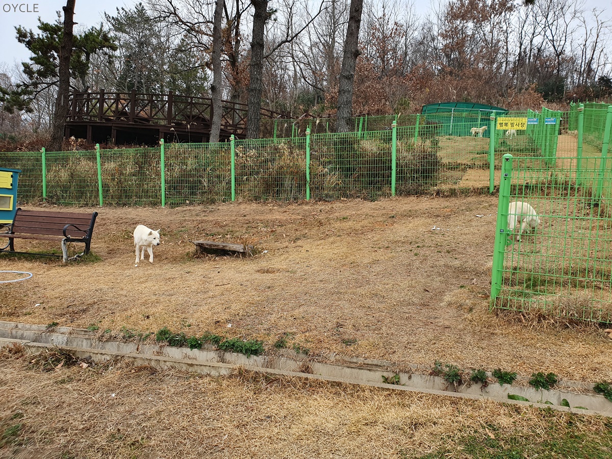 일단은 야외의 사육장들을 보기로 했다. 이런식으로 야지에 사육장을 만들어놓고 진돗개들을 풀어놨다.