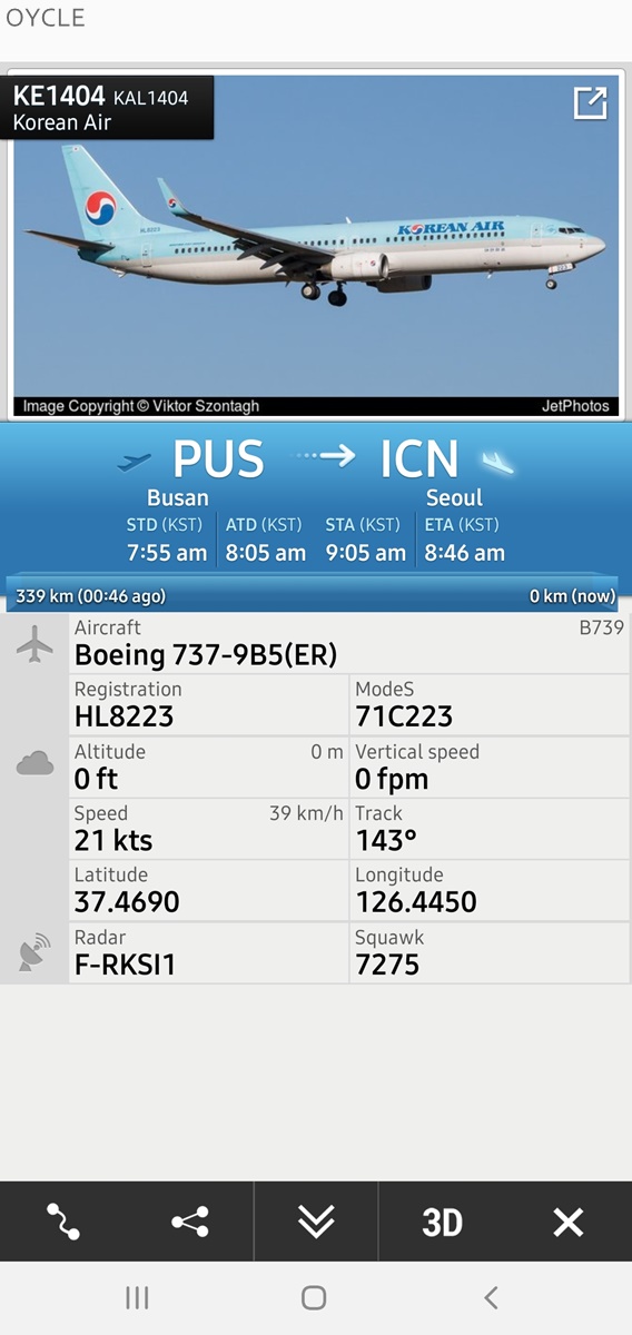 이번에 탑승한 내항기는 KE1404편으로 김행공항을 오전 7시 55분에 출발하는 스케줄이다.