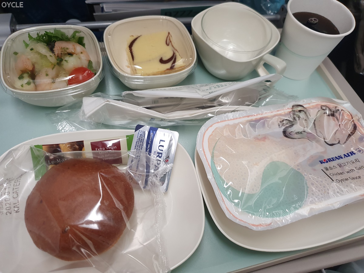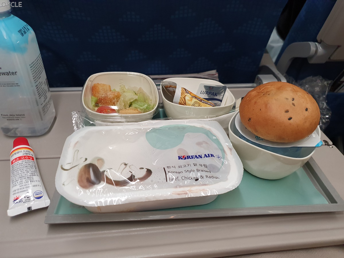 이륙 2시간 정도 후 쯤 첫 번째 기내식이 제공됐다.
