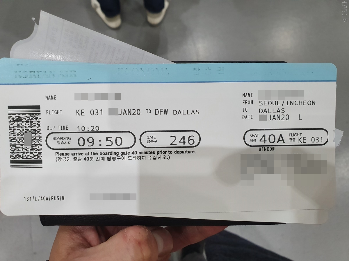 미국 달라스 여행을 위해 탑승했던 인천공항[ICN] 출발 미국 달라스 포트워스 공항[DFW] 도착 대한항공 KE031편의 이코노미 탑승후기이다.