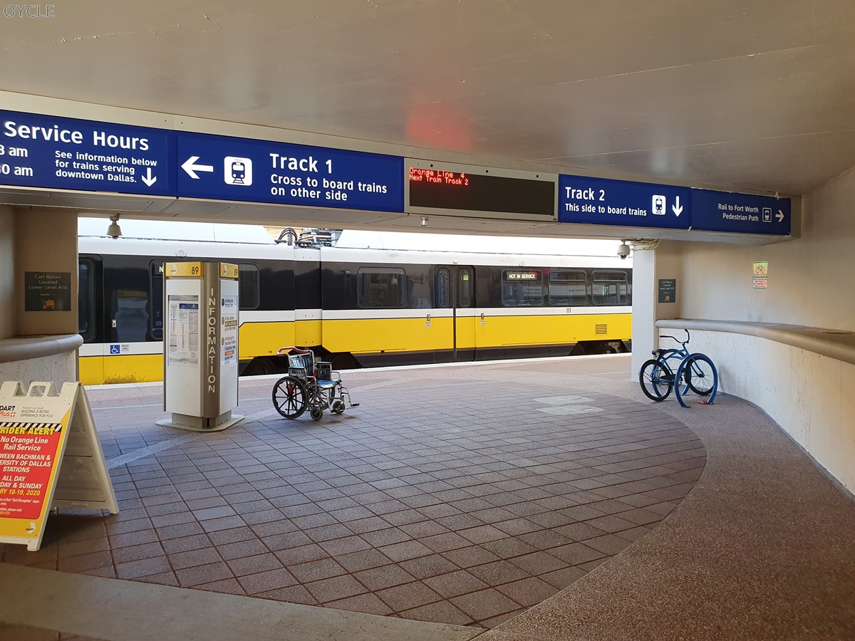 종착역은 전철 전면과 각 객실의 측면에 표시되어 있다. LBJ/CENTRAL은 달라스 다운타운에서 동북쪽에 위치한 역이다. Orange라인은 달라스 포트워스 공항에서 출발해서 동남쪽으로 내려가 다운타운을 거친 후에 동북쪽으로 다시 올라가 LBJ/Central 역에서 끝나는 노선이다.