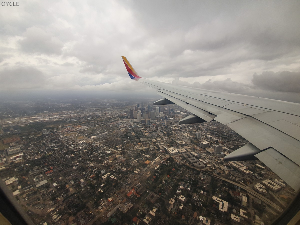 참고로, 사우스웨스트 항공은 좌석지정이 별도로 존재하지 않는다. 다만 체크인 순서에 따라서 탑승순서가 정해지는데 온라인체크인은 탑승 24시간 전에 열리게 된다. 혹은 탑승순서를 빠르게 하고 싶다면 Early bird check in을 옵션으로 구입하면 자동으로 빠른 탑승순서가 정해지게 된다. 달라스에서 휴스턴까지는 1시간 남짓 걸리기 때문에 굳이 구입하지 않았다. 또한 워낙 비행편이 많은 구간이라 좌석 여유가 있을 것이라 예상도 했었는데 60%정도만 탑승하여 원하는 창가석에 앉을 수 있었다.