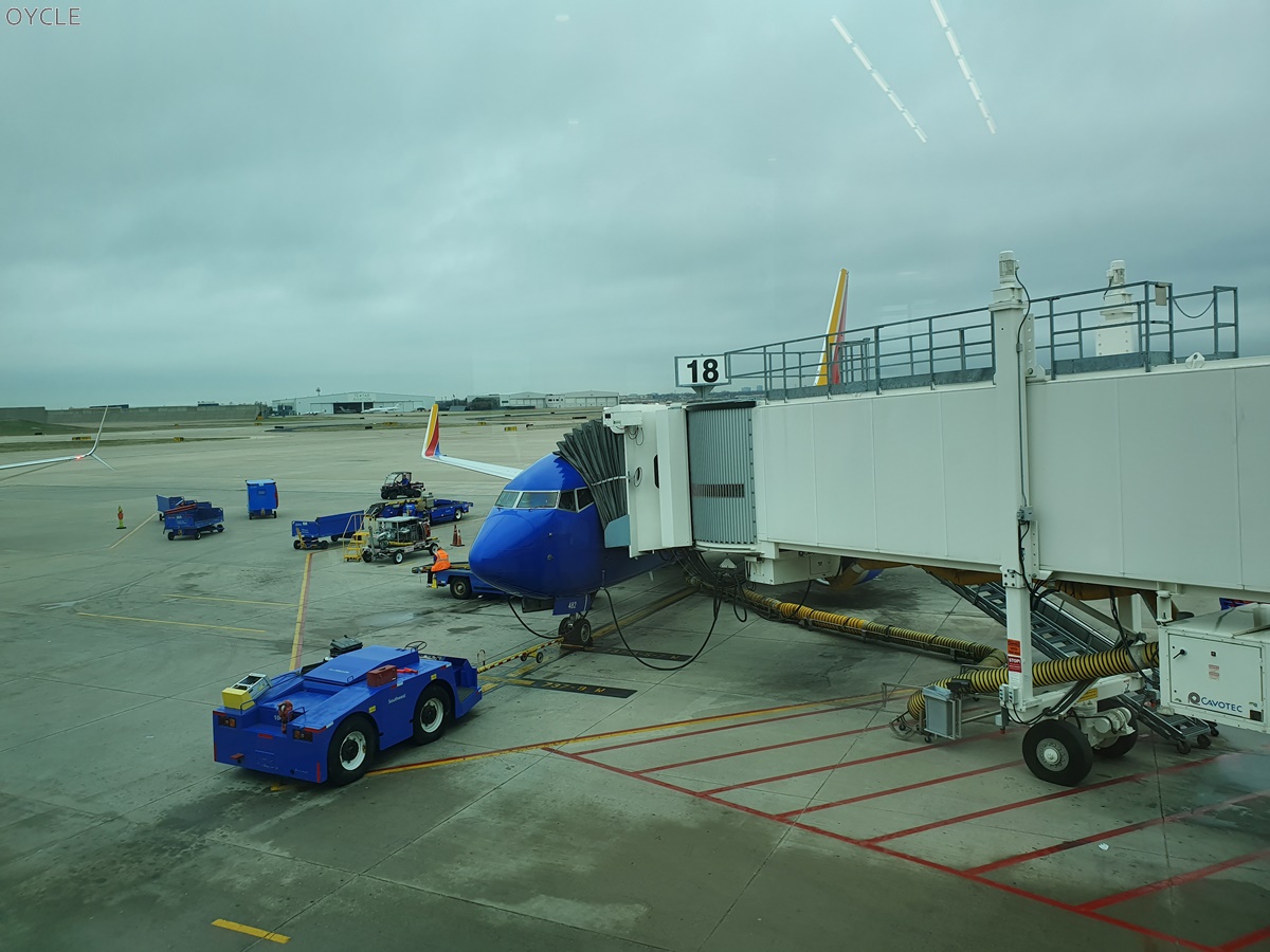 내가 탑승한 항공기. 사우스웨스트항공 특유의 파란색 도장.