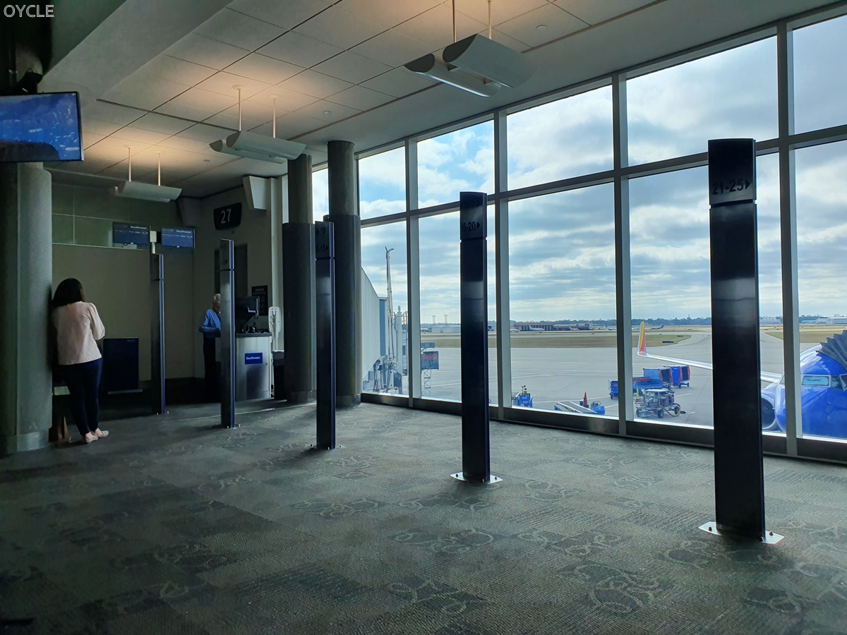 사우스웨스트 항공 탑승구라면 어디든 있는 탑승 순서 기둥이다. 기둥에 써있는 번호에 맞춰서 탑승을 기다리면 된다.
