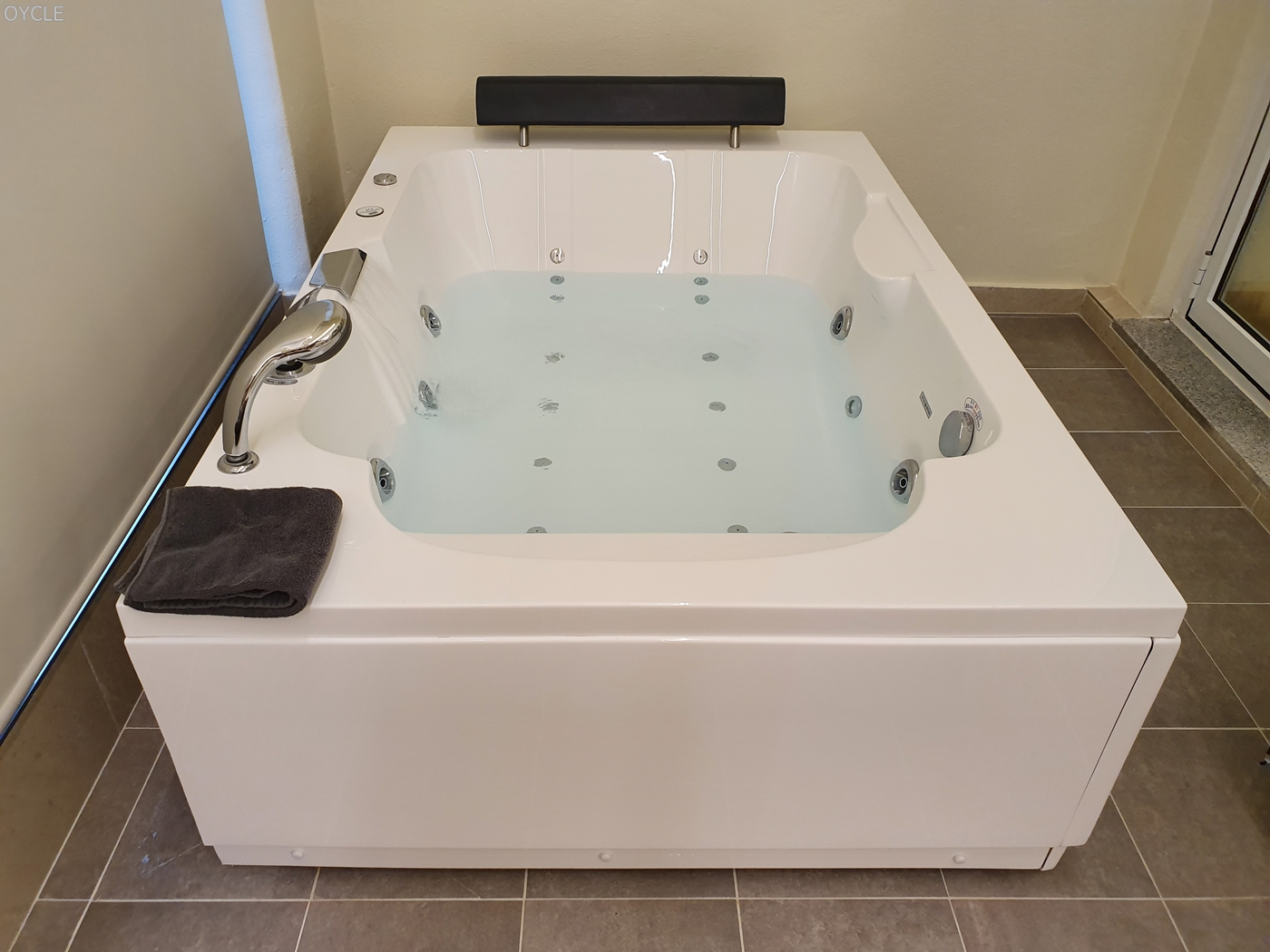 또한 실내풀 바로 옆에는 월풀욕조도 있었다. 아이들이 궁금해해서 잠깐 작동을 했는데, 아이들은 실내풀이 있는데 굳이 여기서 왜 노냐며 바로 풀장으로 고고싱.