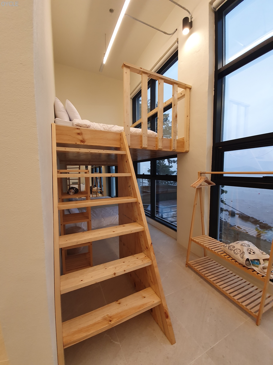 스튜디오 형식의 객실이라 별도의 침실은 없고 스튜디오 구석에 이층으로 침대가 위치하고 있다. 2층이라 더 좋아했던 아이들. 계단이 조금 가파른게 살짝 걸리긴 했지만, 다행히 별일은 없었다.