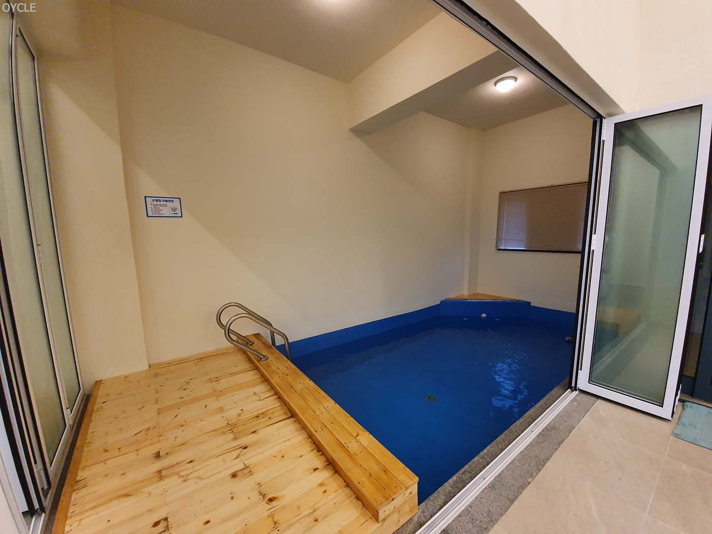 수영장의 오른쪽 문을 열면 바로 거실에서 연결되기도 한다. 하지만 객실 가득차는 습기는 덤...아무튼 4인가족이 들어가서 하루 종일 수영하고 놀고 하기에 충분한 크기이고 깊이는 1미터 조금 안되는 듯 했다. 코로나로 집콕하던 아이들이 너무 좋아해서 아주 만족.