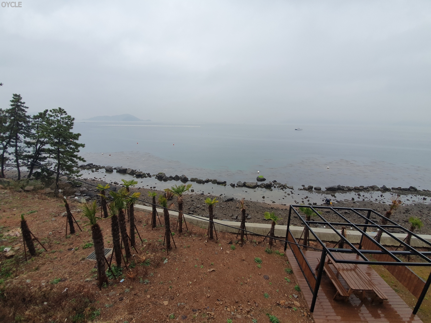 객실에서는 경남 고성방향으로 바다가 보인다. 비가오던 날이라 날씨가 아쉽기했다.