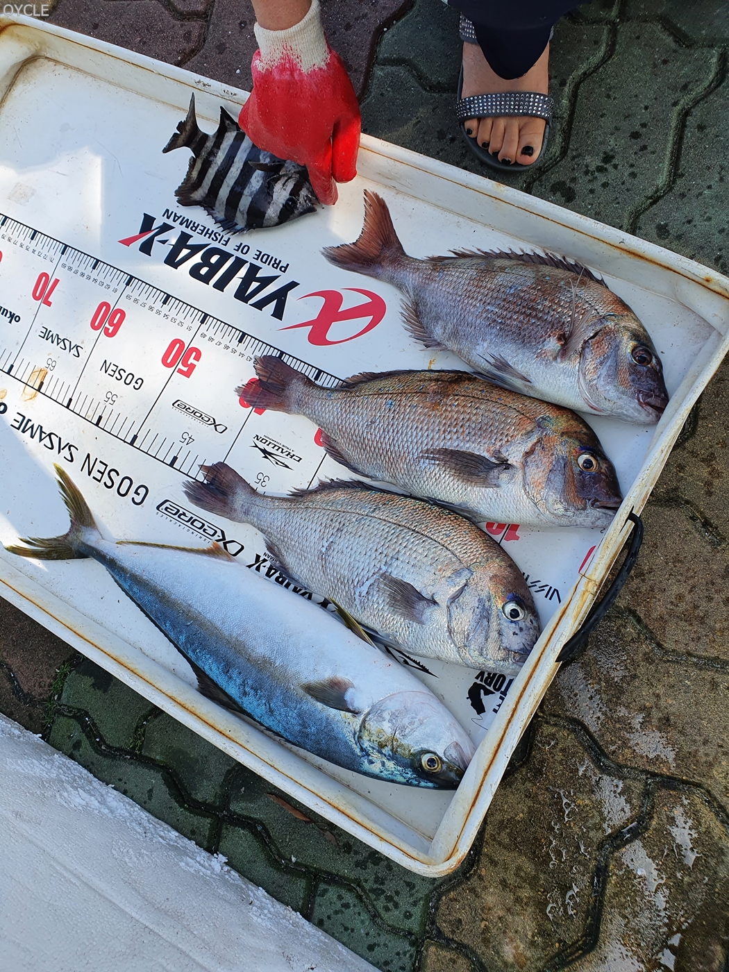 총 조과는 57센치 부시리 1마리, 4짜 참돔 3마리, 뺀찌 1마리다. 오전 10시까지의 짧은 낚시시간치고는 골고루 잘 잡은날이다.