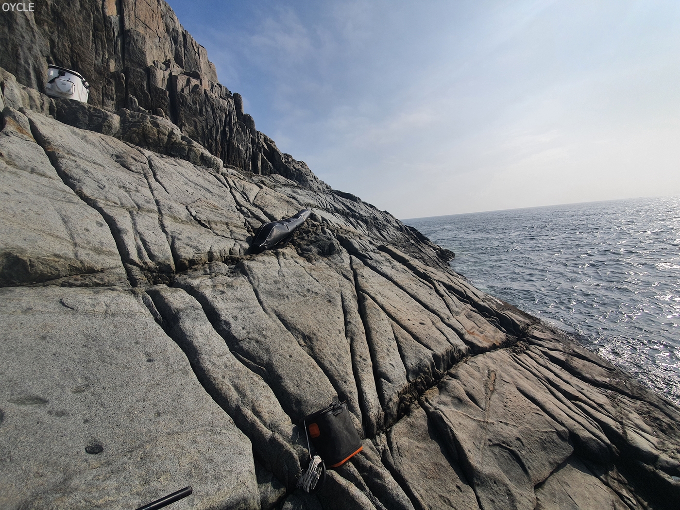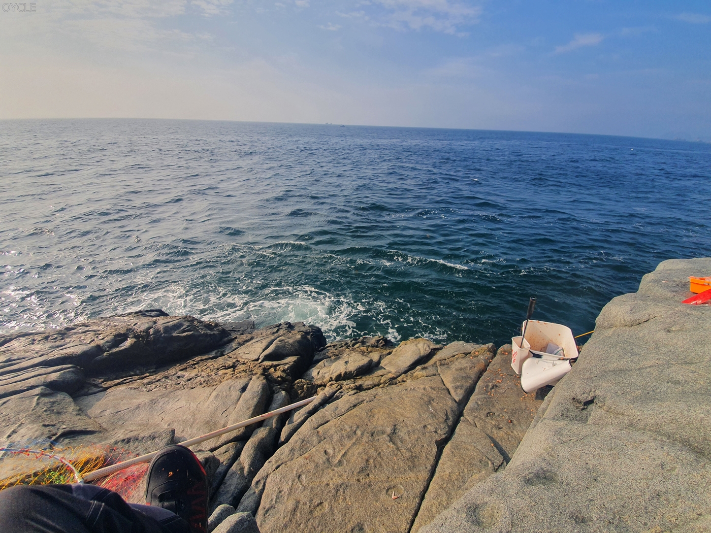 10시에 철수하는 배를 타기위해 9시경부터 갯바위 청소를 시작했다. 보다시피 너무 경사져있어서 두레박뜨기도 쉽지 않았다.