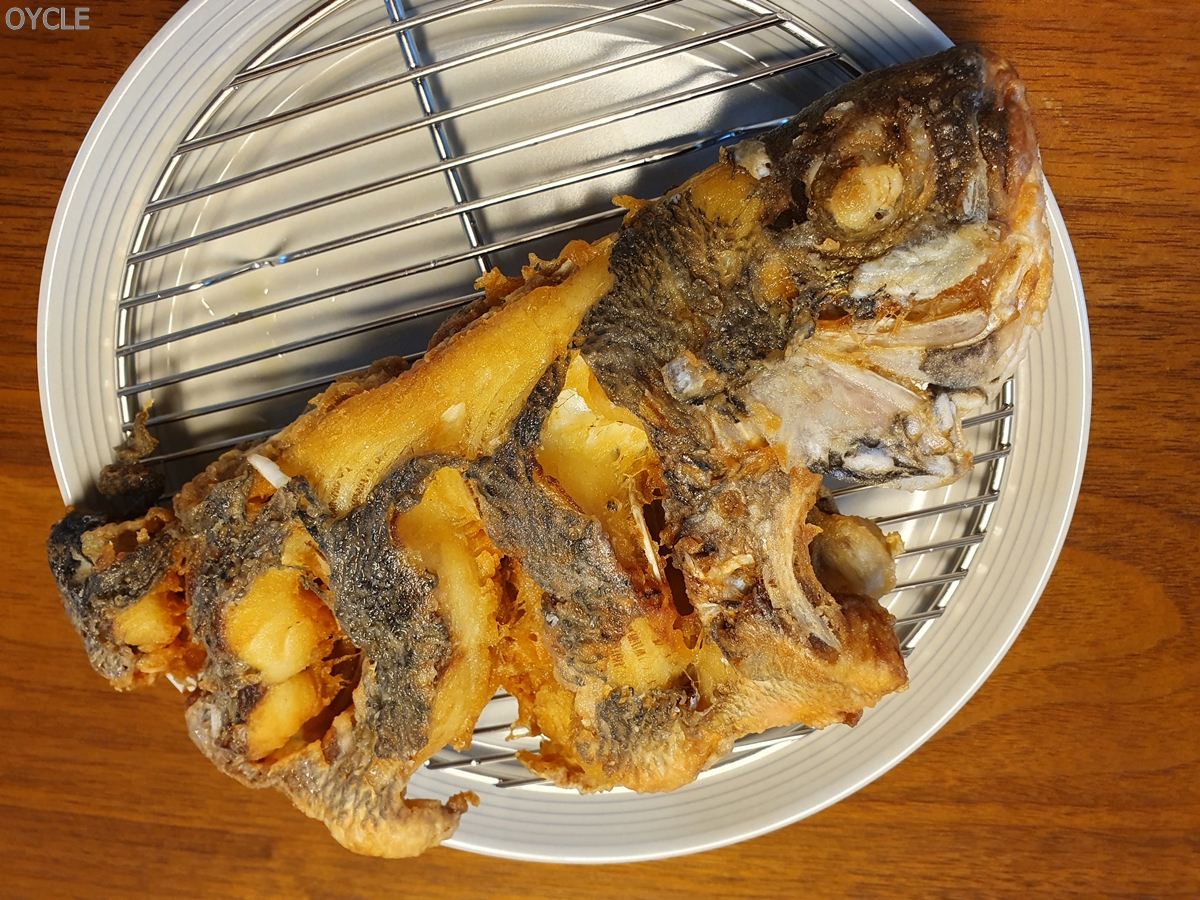 33cm 감성돔은 아이들과 같이 먹기 위해 손질해서 튀겨버렸다. 바싹튀겨서 형체를 알아보기 힘들지만 맛은 정말 훌륭했다.