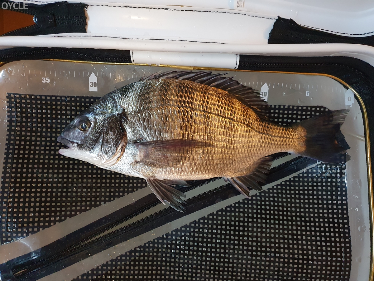 시작한지 약 30분만에 33cm의 감성돔을 올릴 수 있었다. 내가 가덕도에서 잡은 감성돔 중 가장 큰 사이즈이다. 8월에 참돔을 많이 잡아봐서 인지 크게 당황하지 않고 잘 끌어낼 수 있었다.