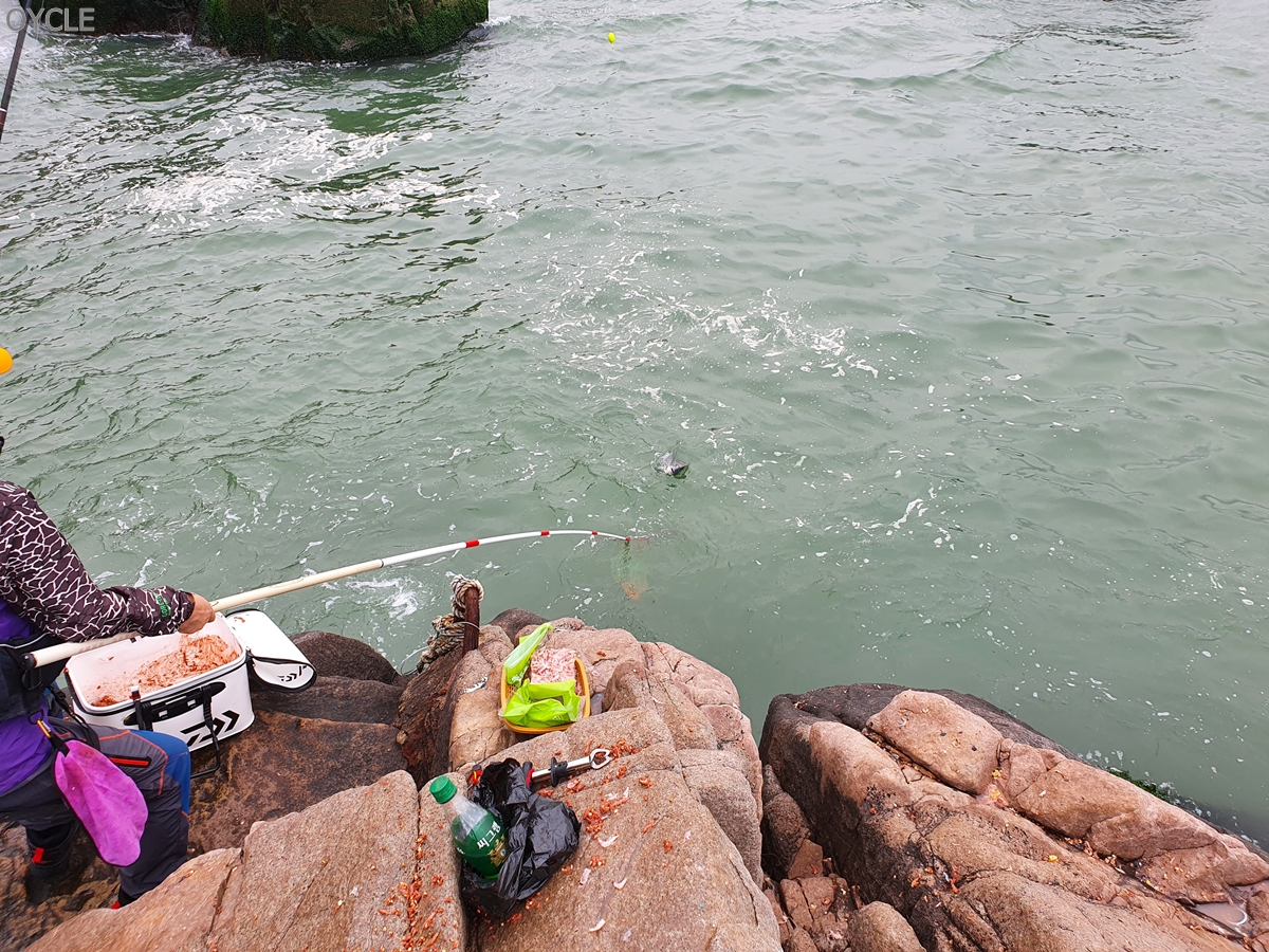 조금 시간이 지나니 파도가 심해졌고 중간에 사고가 터졌다. 낚시 가방을 통째로 파도가 가져가버린 것이다. 다행히도 오전 낚시 철수배가 근처에 있었고, 선장님이 나를 보고 있었는지 바로 달려와서 건질 수 있었다.