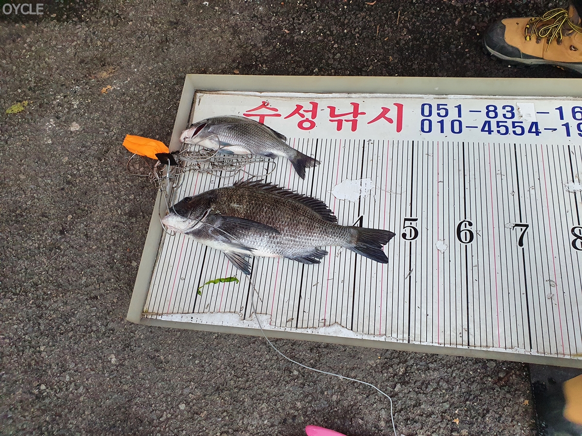 그리고 얼마지나지 않아 옆 조사님이 엄청난 휨새를 보였고 둘 다 숭어인줄 알았으나 띄워보니 감성돔. 가덕도에서 낚시한지는 얼마되지 않았으나 이 정도 사이즈를 본적이 없었는데 흔치 않은 구경이었다. 그것도 06호대로 47감성돔을 안정적으로 올리는 장면을...