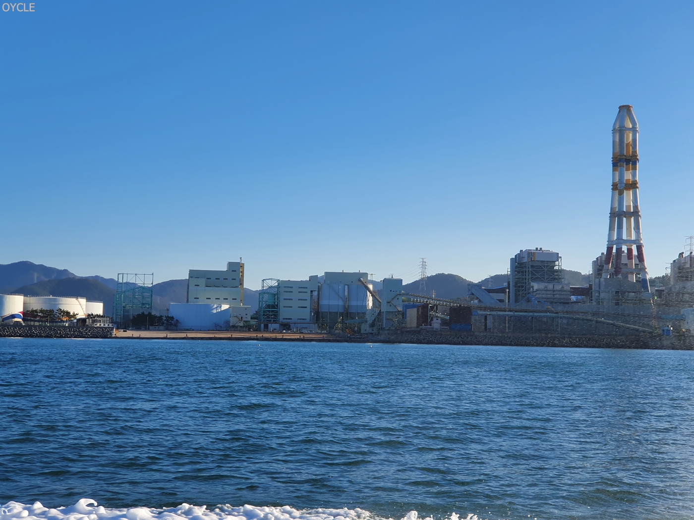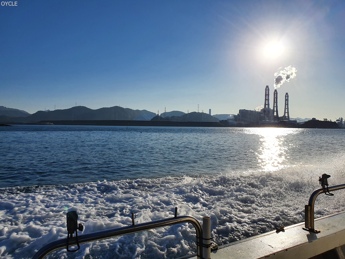 삼천포를 출항하여 화력발전소 옆을 지났다.