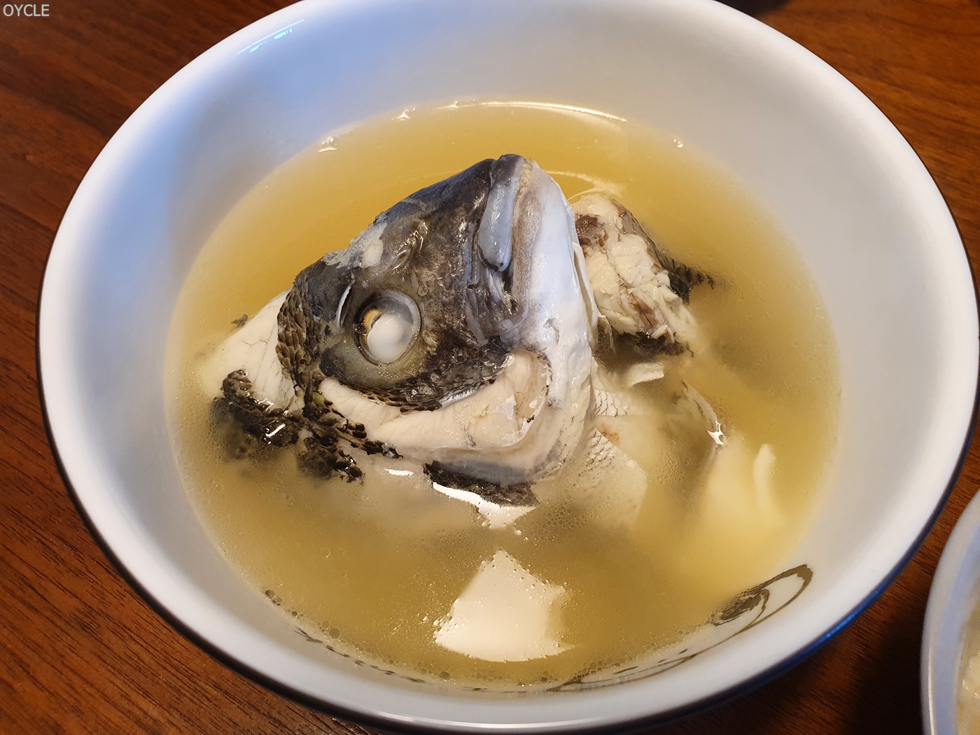 그리고 감성돔은 뽀얀 국물을 보여주었다. 참고로 다시마로 초반에 육수 조금 내고 다진마늘 한숟갈 넣은 것 빼고는 국물 색을 낼 조미료를 넣지 않았는데 국물 색이 뽀얗다. 살 맛도 쫄깃쫄깃 괜찮았다.