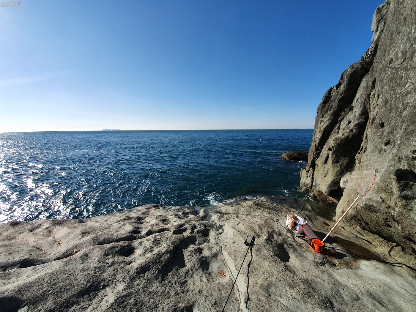 이전에 낚시한 사람이 얼마나 낚시줄을 버려놨는지 갯바위 이곳저곳에 낚시줄이 널부러져있었다. 제발 청소 좀...내가 다 깨끗이 치우고 철수하였다.