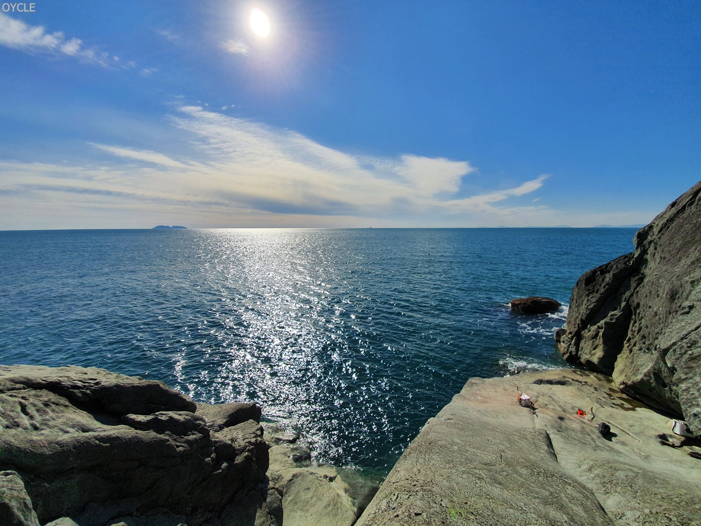 약 40분을 달려 두미도에 도착했고 거의 마지막으로 하선하게 되었다. 미끄럼바위라는 곳이다. 이날 바람이 많이 불던 날이었는데 그나마 오른쪽에 보이는 바위가 많은 바람을 막아주는 자리였다.