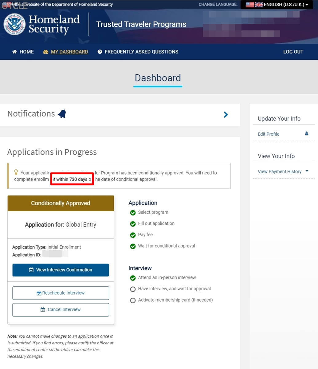 본 포스팅은 과거 신청했던 글로벌엔트리의 조건부 승인(conditionally approved)이후 인터뷰 기한에 관한 포스팅이다.