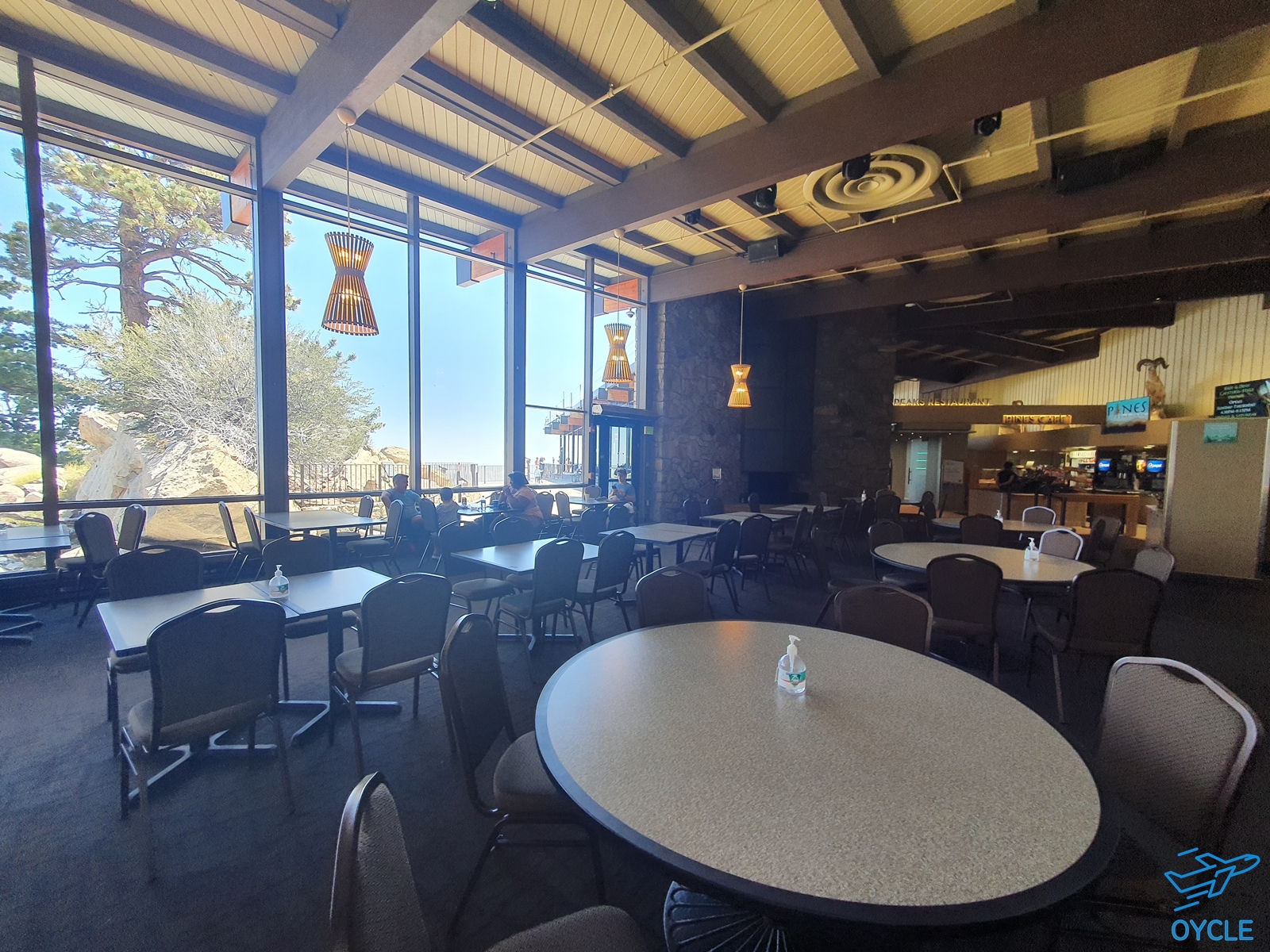 정상에 도착했다. 정상에는 음료와 간단한 식사를 할 수 있는 바, 외부 풍경을 볼 수 있는 전망대, 2시간 코스의 트레킹 코스, 예약해서 사용하는 캠핑장 등이 있다.
