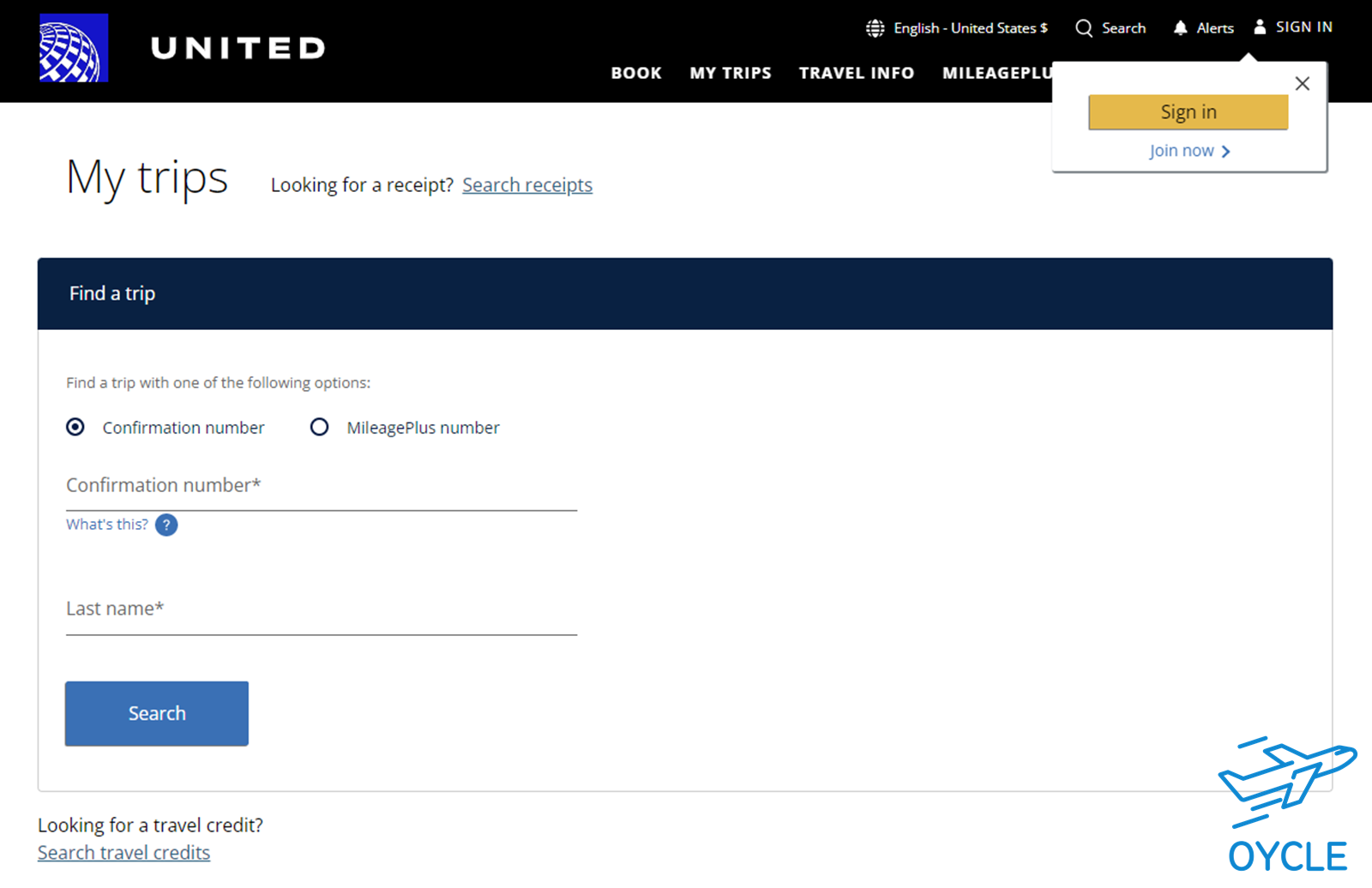 좌석지정도 될 것 같아서 유나이티드 항공 홈페이지에 들어가 시도해보았다. 아시아나 항공에서 스얼발권할 때 받은 예약번호를 입력하고 이름을 입력했다.