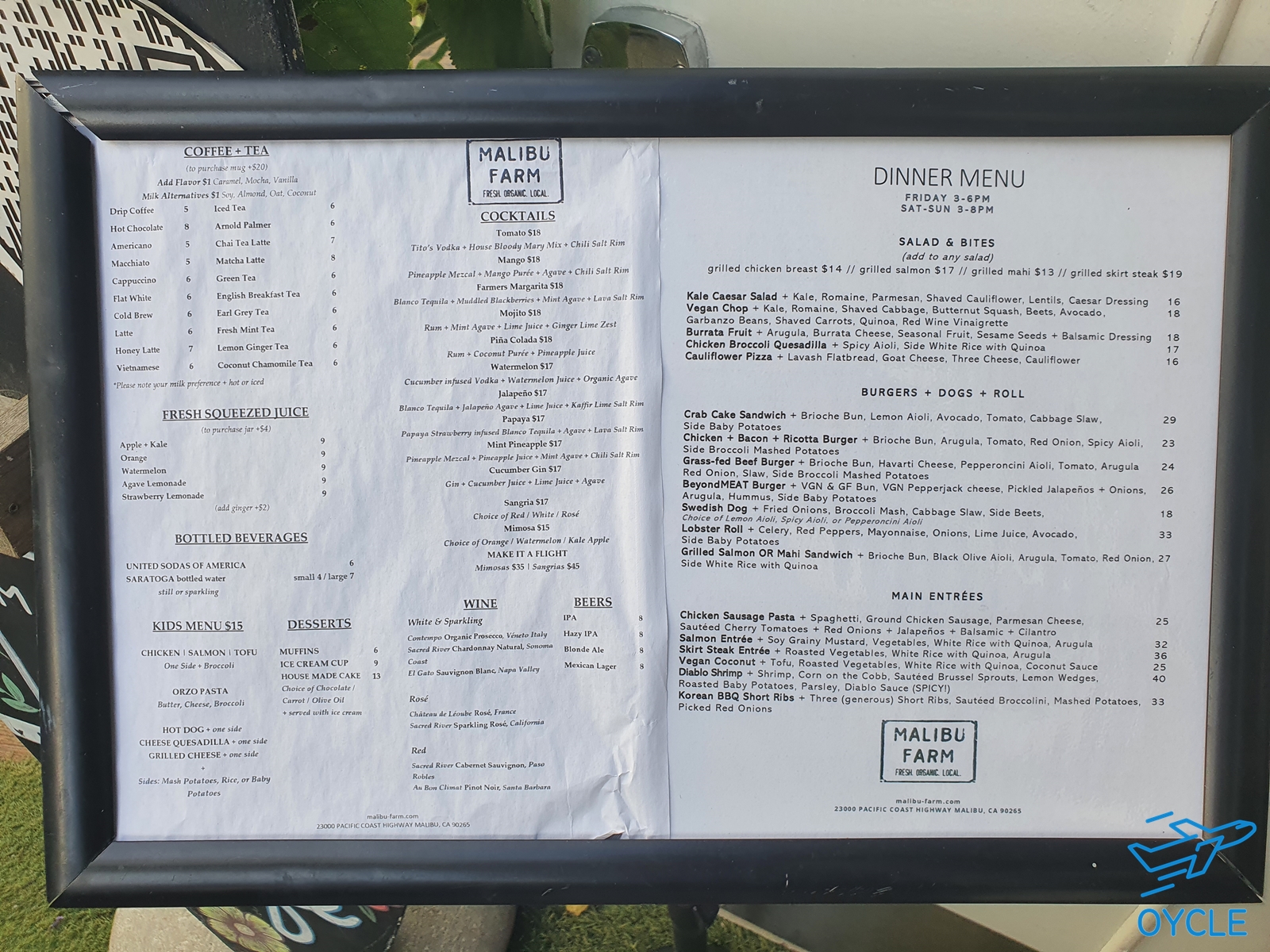 그리고 그 당시에 말리부 피어에 있는 말리부 팜 (Malibu Farm) 레스토랑에서 저녁을 먹었는데 너무 너무 입맛이 안맞았었다. 하지만 이번엔 피어 끝자락에 말리부 팜 피어 카페 (Malibu Farm Pier Cafe)라는 분점 비슷한 음식점이 있어서 속는셈치고 이곳을 방문하였는데 아주 괜찮았기에 오랜만에 맛집후기도 남겨보려고 한다.