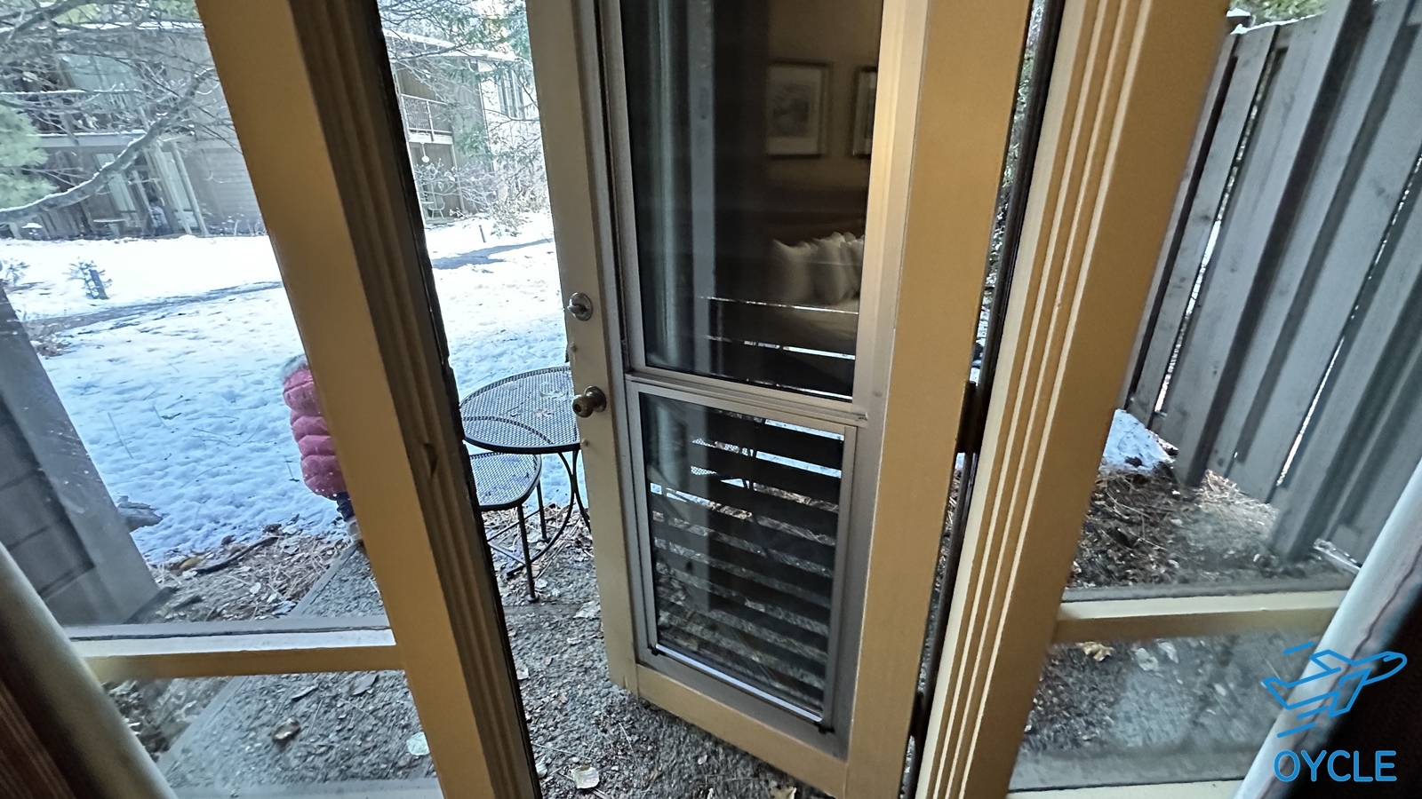 우리 객실이 1층이라 위 사진처럼 외부로 향하는 테라스에 문이 있었다. 아이들은 이 문을 통해 바로 앞의 눈밭에서 재밌는 시간들을 보내곤 했다.