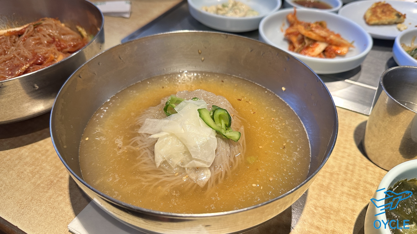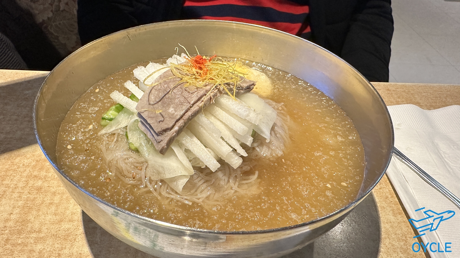 시원한 물냉면. 냉면육수도 괜찮았고 나의 경우 너무 쫄깃한 면을 싫어하는데 적당히 쫄깃해서 면이 괜찮았다.