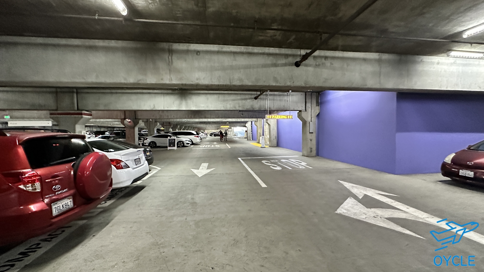 주차를 한 뒤 주차장 엘리베이터를 통해 트램을 탑승하는 층으로 이동한다.