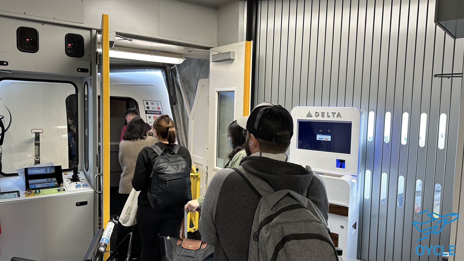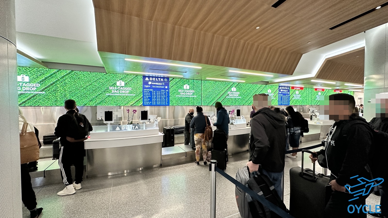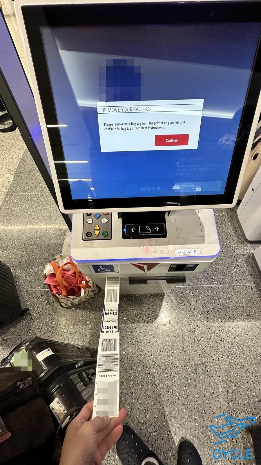 델타항공의 키오스크에 예약번호를 입력하고 수화물 표를 뽑는다. 델타항공 홈페이지에서 해당 항공편을 예약할 때 델타항공으로 로그인하지 않고 예약을 진행하면 대한항공 회원번호를 입력할 수 있다. (로그인하면 델타항공 회원번호만 입력되고 마일리지도 델타항공으로 적립되게 된다) 대한항공 회원번호를 입력하면 알아서 모닝캄 (스카이팀) 혜택이 적용되어 수화물 (Checked bag) 1개를 무료로 보낼 수 있다.