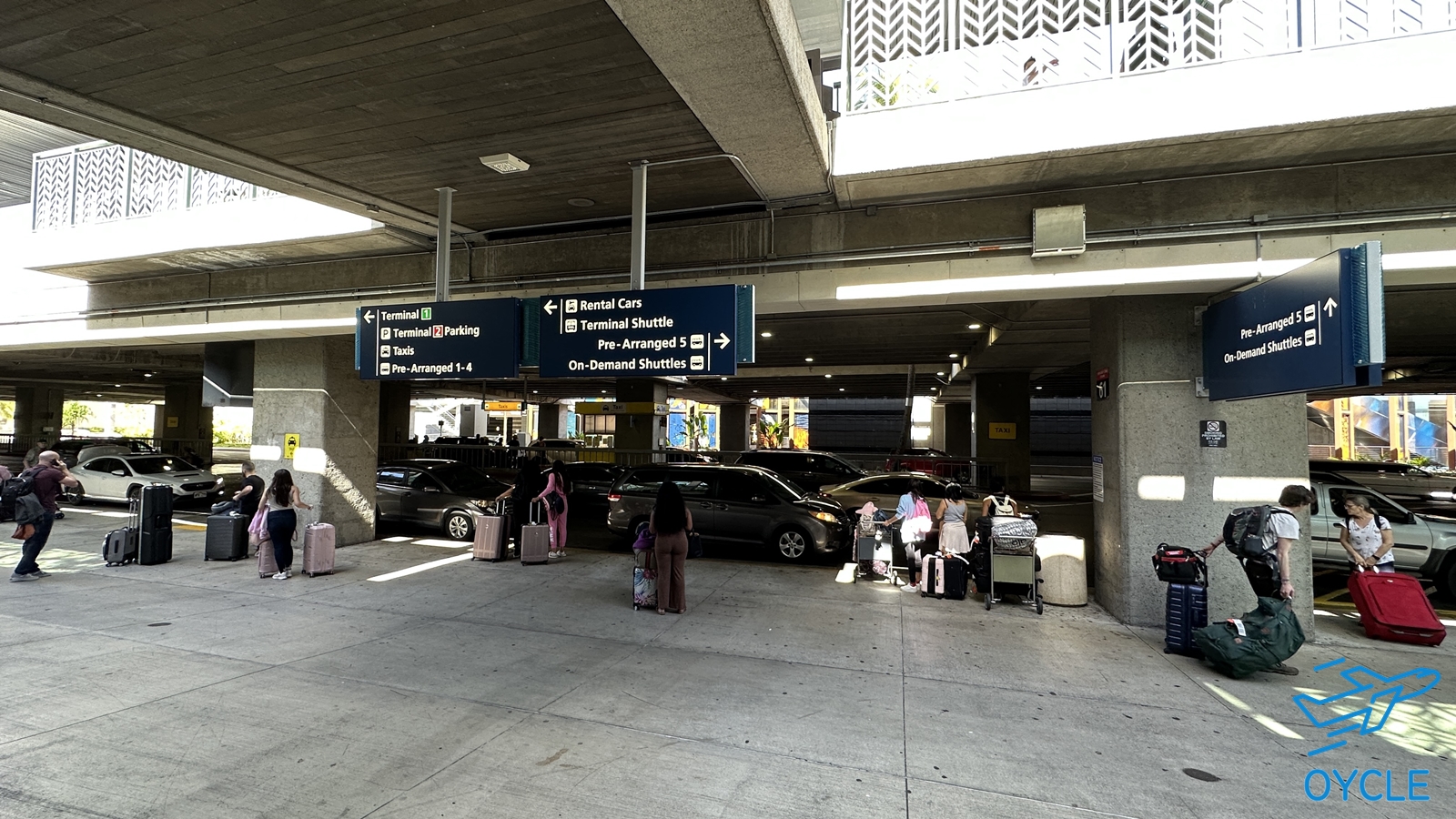 나는 미국 국내선을 타고 왔지만 대한항공도 같은 터미널을 이용하기 때문에 짐을 찾고 나오면 비슷한 풍경을 보게 될 것이다. 우리는 호놀룰루 공항에서 우버나 리프트를 이용해 와이키키로 이동하기로 했기 때문에 우버나 리프트를 부를 수 있는 픽업 Zone으로 이동해야했다. 일단은 픽업 Zone은 출발층에 있으므로 한층 올라가야했다.