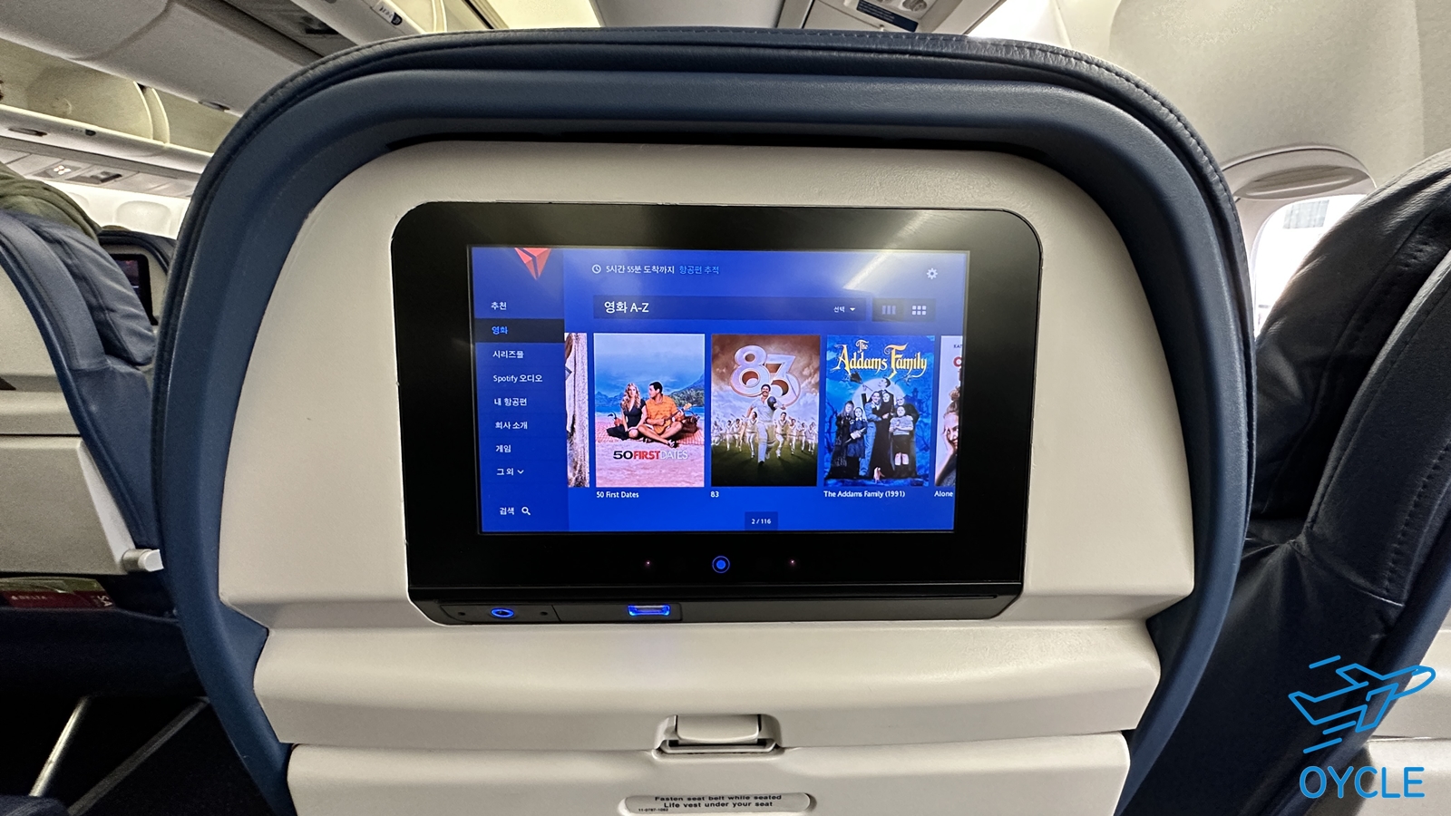 자막, 한국어 더빙, 게임, 음악 등등 예상과 다르게 매우 다양한 엔터테인먼트가 제공되던 좌석 앞 모니터이다.
