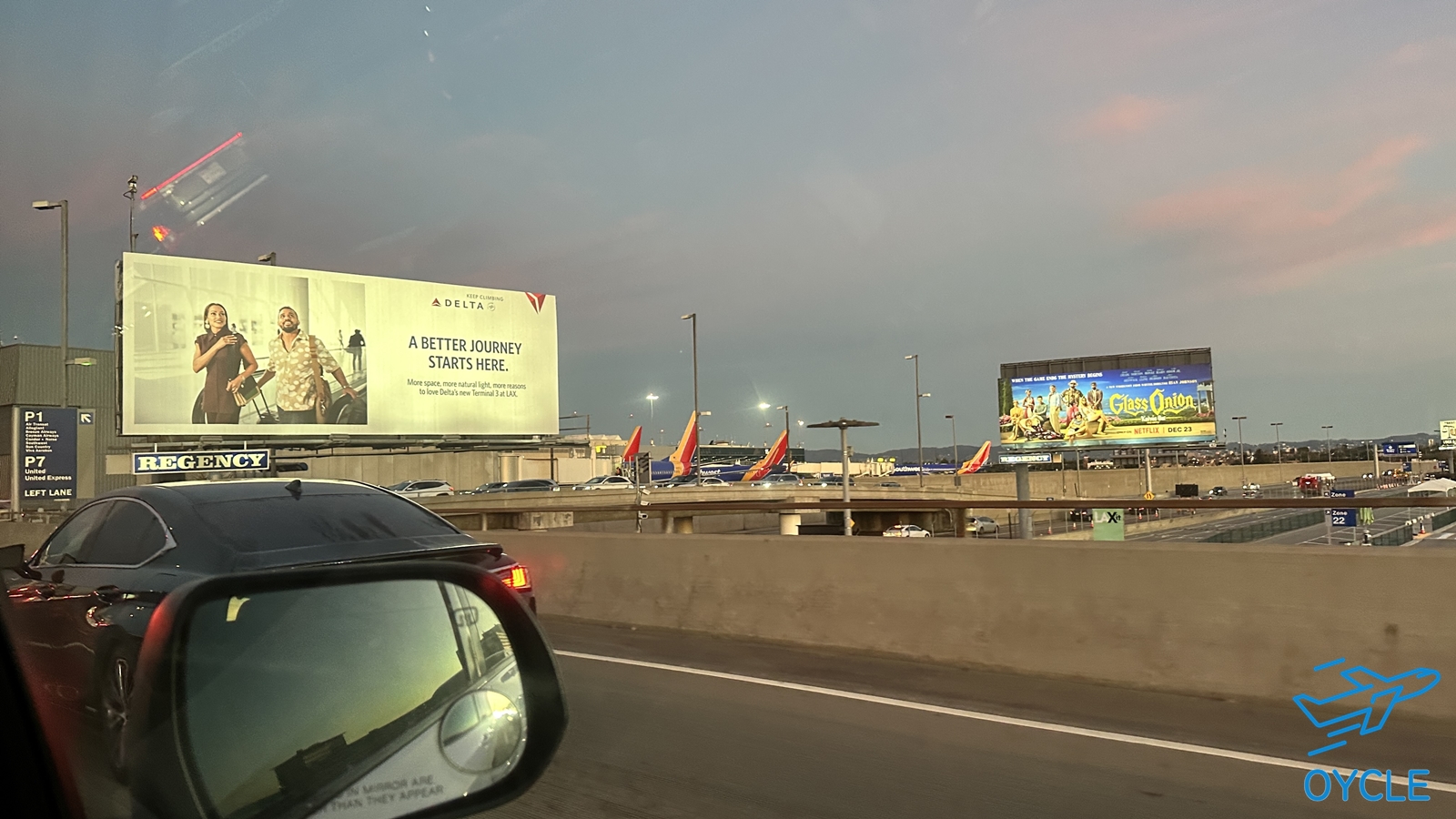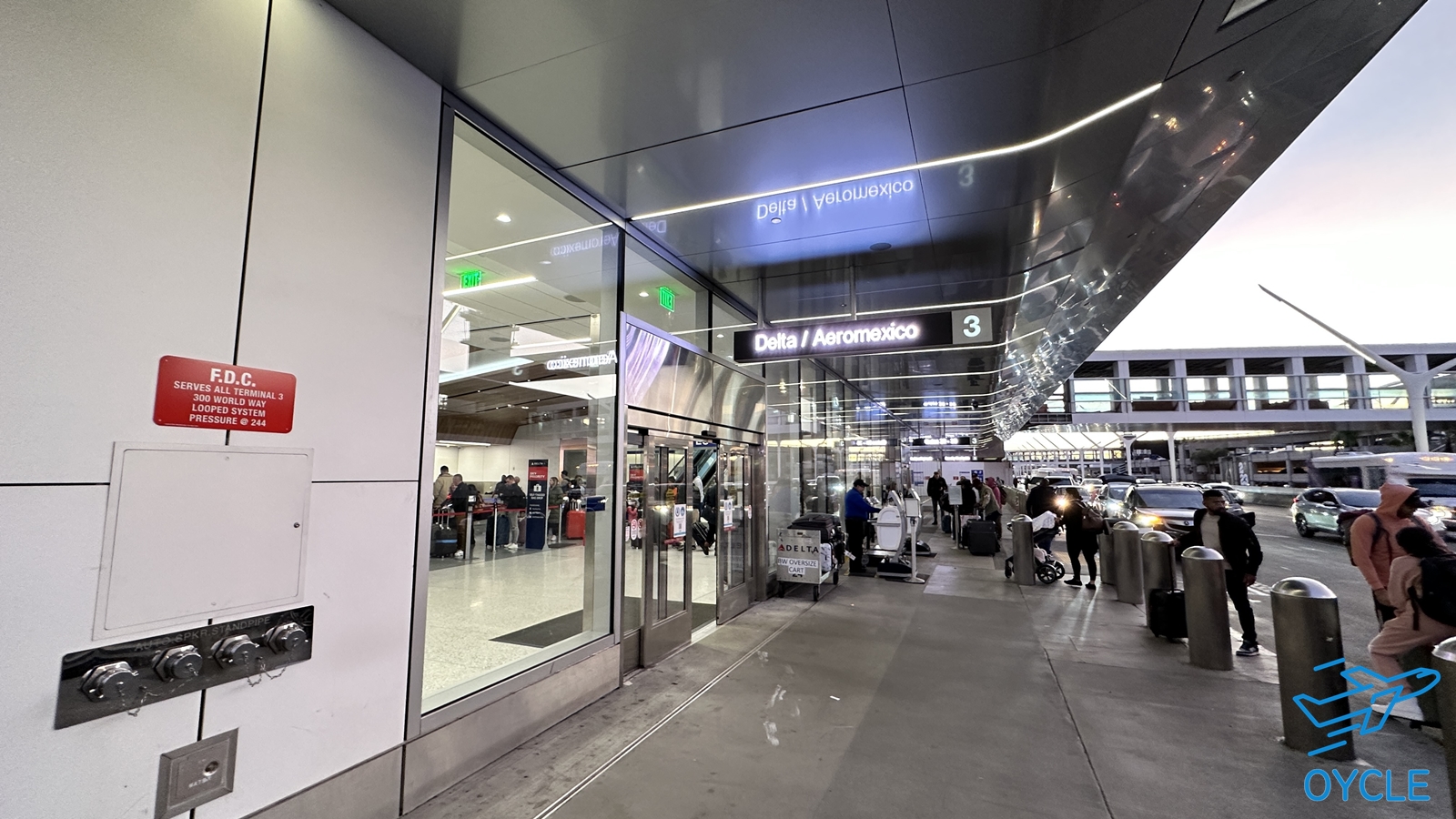 도로쪽을 바라보면 이런 느낌이다. 이쪽은 동쪽에 있는 픽업 Zone (Lobby 8 이라고 부른다)이고 아마 미국 국내선 탑승자들이 가까운 존일 듯 하다. 서쪽에도 픽업 Zone (Lobby 5/6 이라고 부른다) 이 있고 이 경우 대한항공 같은 국제선 탑승객들에게 가까운 존일 것이다.