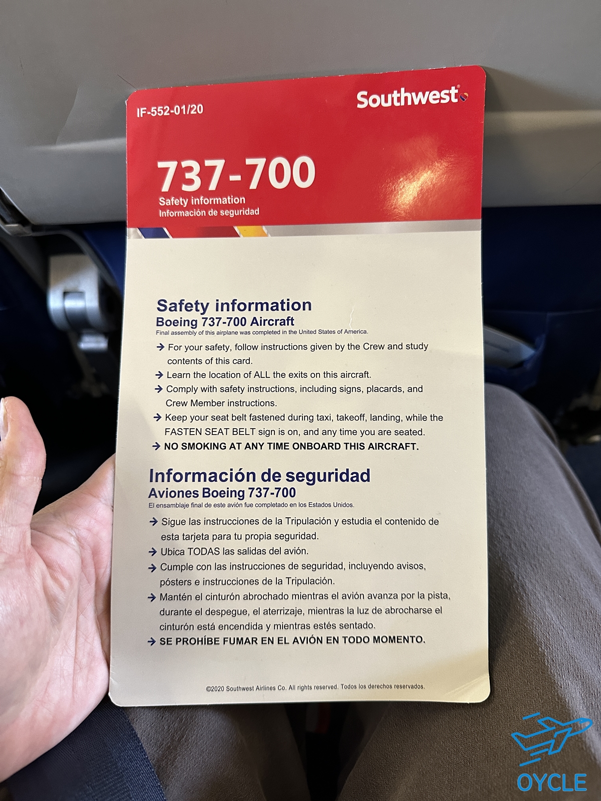 오늘 탑승한 항공기의 기종은 사우스웨스트항공에서 주력으로 사용하는 B737-700 기종이다.
