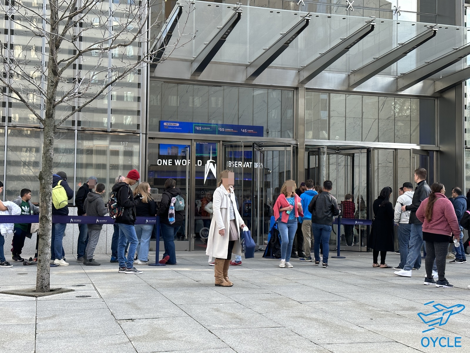 원월드 트레이드 센터 옆으로 원월드 전망대로 향하는 전용 입구가 있었다. 입장시간을 지정해서 티켓을 구입하기 때문에 입장시간에 맞춰서 옆에 줄은 선 뒤 입장을 하게 된다. 입장시간 약 15분 전에 입장이 가능했다.