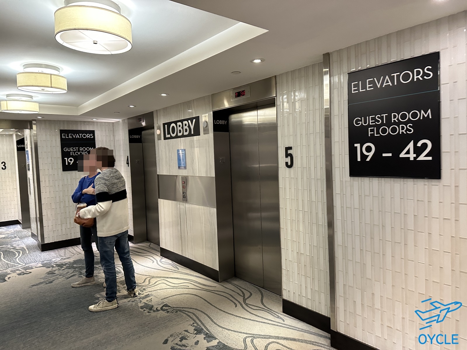 호텔 객실로 향하는 엘리베이터이다. 42층까지 있는 정말 높은 호텔이다. 엘리베이터가 5대 있었는데 아침식사시간이나 체크아웃시간에는 엘리베이터 타는게 조금 복잡하기도 했다.