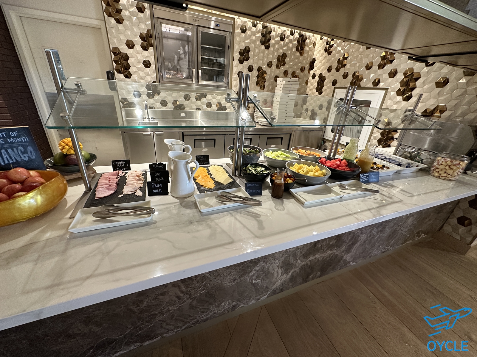 다음날 힐튼 골드멤버에게 제공되는 무료 조식을 먹기위해 1층 식당으로 향했다. (미국 내 힐튼에서는 골드멤버나 다이아몬드 멤버에게 조식제공을 하지 않고 크레딧을 제공하지만 미국 외의 힐튼 호텔에서는 조식을 제공한다) 위 사진의 음식들은 무료로 제공되는 조식이라고 했고 아래 사진의 음식들은 일부 금액을 추가하면 제공되는 조식 메뉴라고 했다.