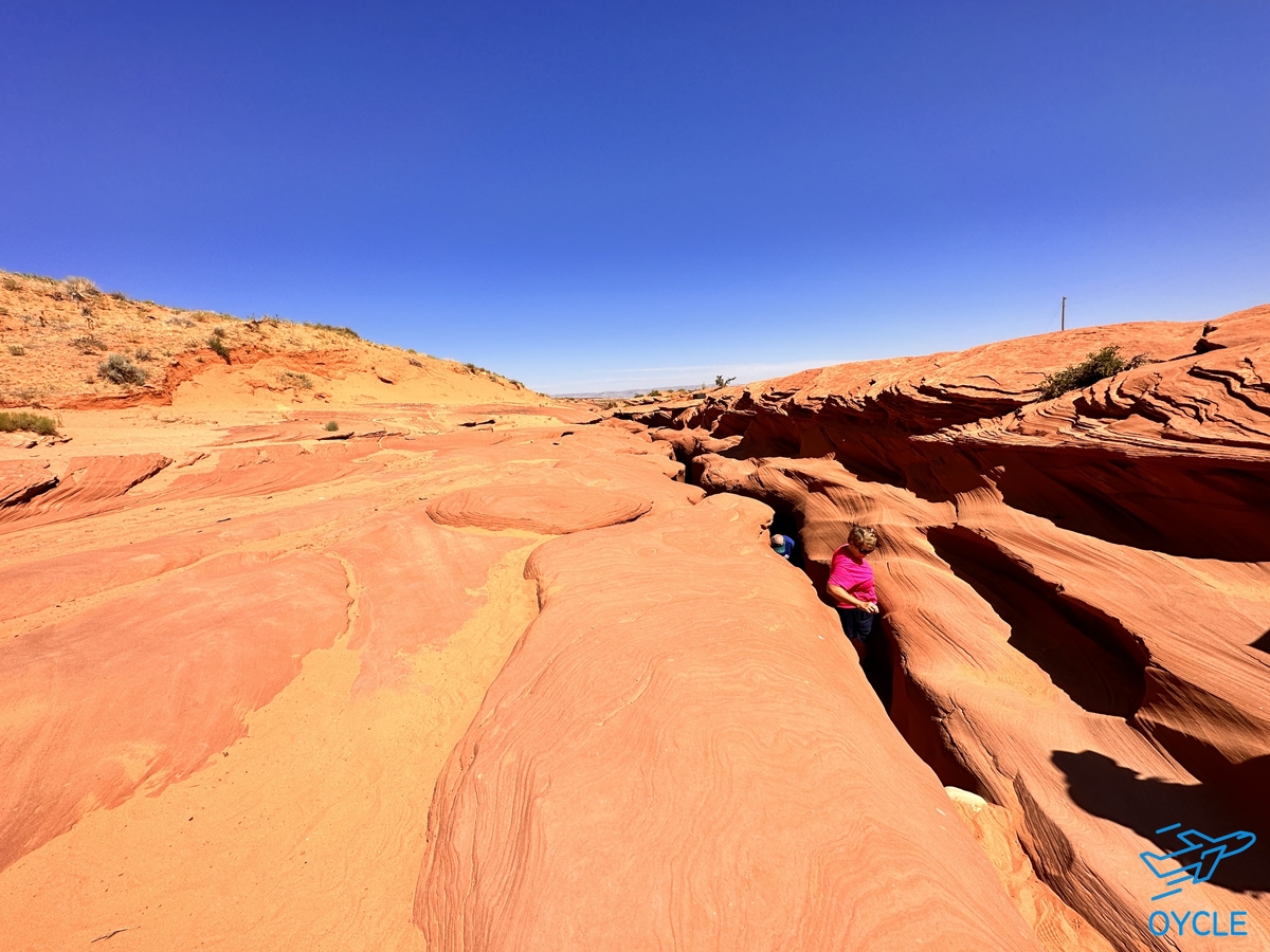 앤텔로프 캐년이 투어 시작장소에서는 전혀 보이지 않았기 때문에 차를 타고 이동하는건가? 아니면 사막을 한참 걸어서 이동하는 건가? 의아스러웠는데 약 5분정도 걸어가니 땅 밑으로 앤텔로프 캐년의 입구가 나타났다.