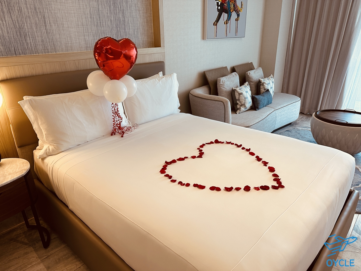 우리가 예약한 객실은 퀸 사이즈 침대가 두 개 있는 객실이었다. 그리고 숙박을 이틀정도 앞둔시점에 월도프 아스토리아 호텔의 컨시어지 서비스로부터 메일이 하나왔었는데 이번 여행이 별도의 축하가 필요한지에 관한 것 이었다. 결혼기념일에 방문하는것은 아니었지만 가장 가까운 기념일이 결혼기념일이라서 그렇게 대답을 줬더니 위와 같이 침대에 꽃 장식을 해두었다. 예상치 못했던 환대였다.