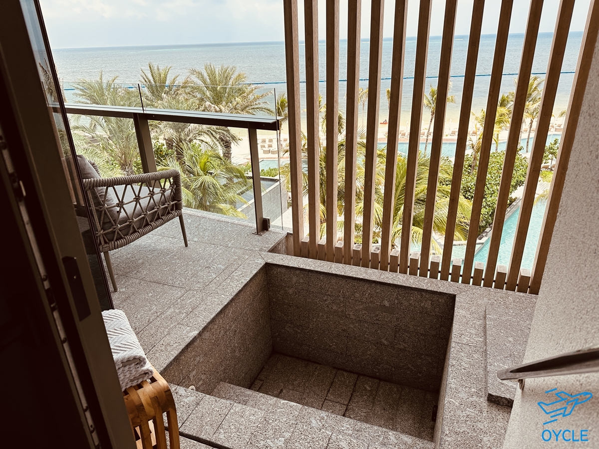 월도프 아스토리아 칸쿤 호텔 객실의 특이한 점은 객실 테라스에 자쿠지가 있다는 점이다. 칸쿤 바다를 바라보며 반신욕을 즐길 수 있다는 점. 분위기 상 따뜻한 물을 받아두고 반신욕을 해야할 것 같지만 8월 칸쿤 날씨는 무쟈게 더웠기 때문에 찬물을 받아두고 몸을 식히는 용도로 사용했다.