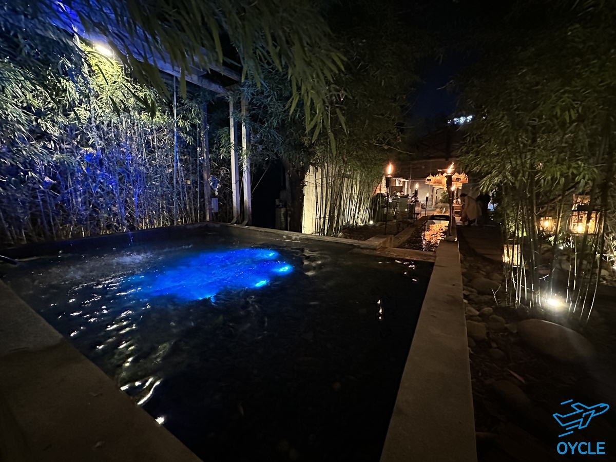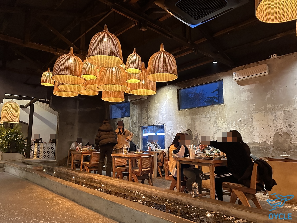 대나무숲을 지나 식당입구로 향하면 위 사진과 같은 작은 풀장과 조명이 있는데 분위기가 좋아서 많은 사람들이 사진을 찍곤했다.