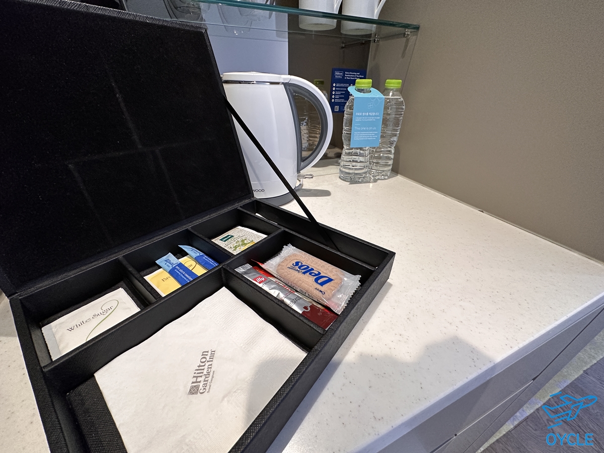 객실키와 함께 다이아몬드 회원이라고 음료 쿠폰도 한장 주었다. 힐튼 가든인 호텔은 다이아몬드 멤버일 경우 2병의 물, 프리미엄 와이파이, 100% 보너스 포인트 적립, 무료 조식이 제공된다.