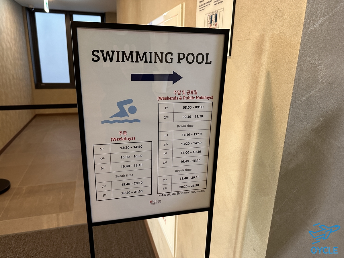 수영장 이용시간이 정해져 있었다. 주중과 주말의 이용시간이 다르다.