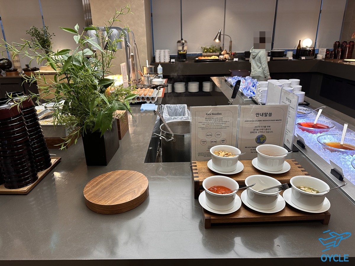 한식, 양식, 아시안식 아주 다양한 메뉴가 제공되었다. 한식에는 전류도 제공되었고 아시안식으로는 쌀국수 등이 제공되었다. 미국 조식 생각하고 가볍게 빵이나 먹고 올 생각이었는데 아침 식사 메뉴가 너무 좋아서 이것저것 배부르게 먹었다.