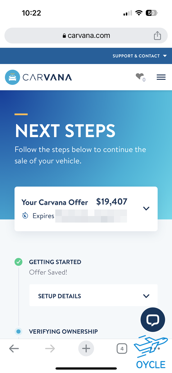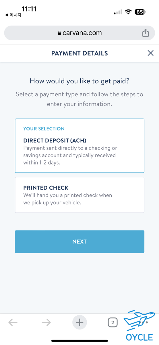 서류들의 사진을 업로드하면 하루정도 후에 카바나에서 승인을 한다. 이제 남은 건 차량을 인도하고 돈을 받는 것인데 차량 대금을 수령하기 위한 방법도 미리 입력해두어야 한다.