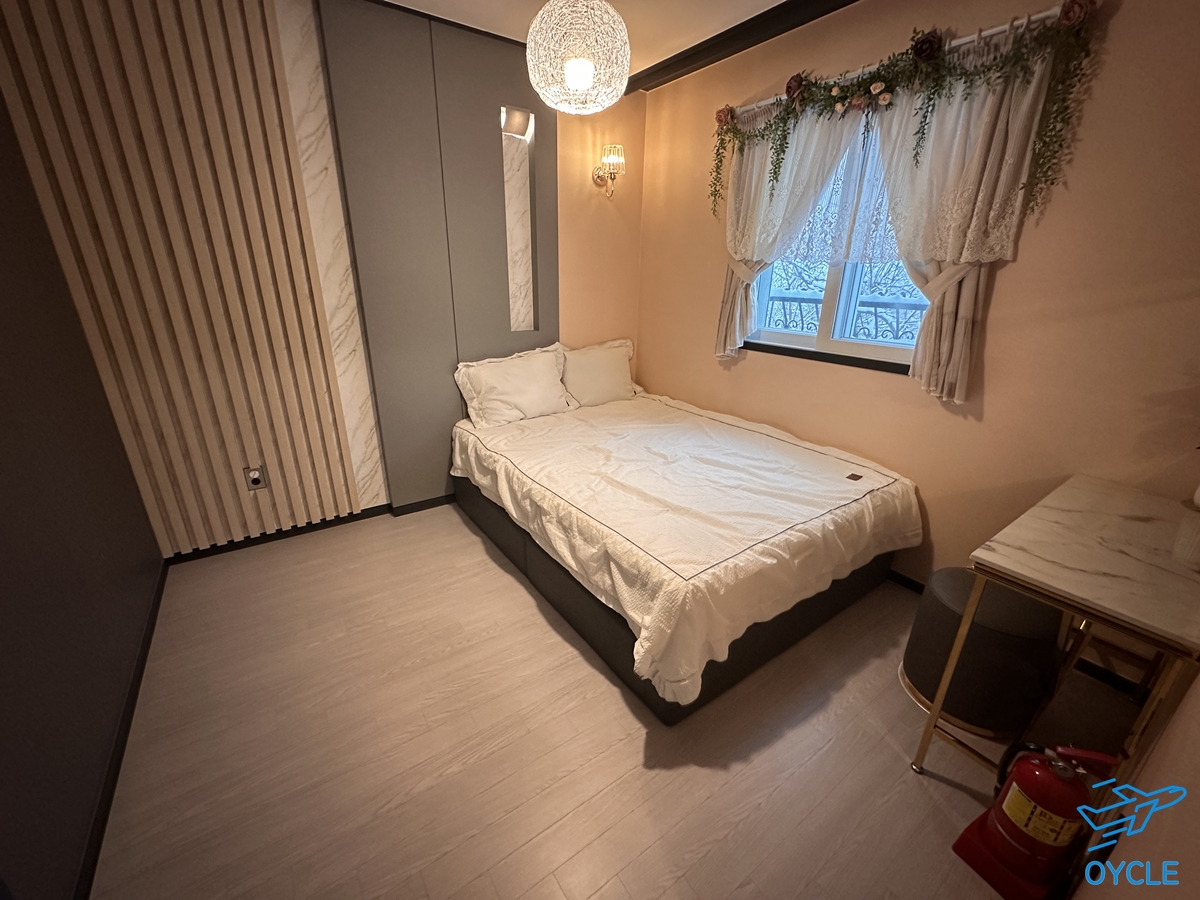 퀸 사이즈 정도되는 침대가 있는 두 번째 침실이다. 부모님 내외가 이용하기 좋은 침실.