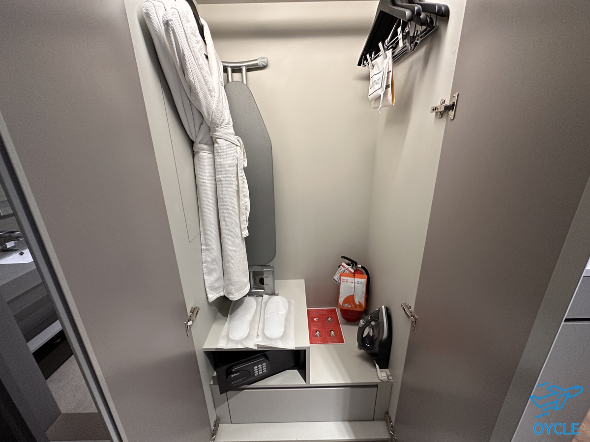 옷장 공간에는 샤워가운, 금고, 다리미 등이 있었고 무엇보다 가장 유용한 슬리퍼도 있었다.
