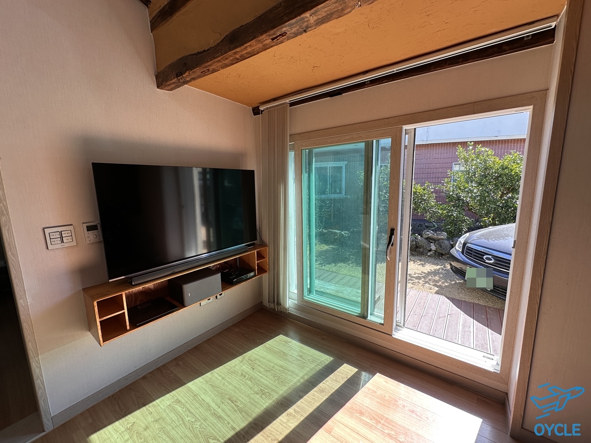 본채 옆에 붙어 있는 별채의 내부이다. 오두막 느낌이고 목재 침상이 놓여져 있는 방이다. 어쩌다보니 내가 이 방을 혼자 사용했는데 텔레비전도 있고 조용히 쉬기 좋은 곳이었다.