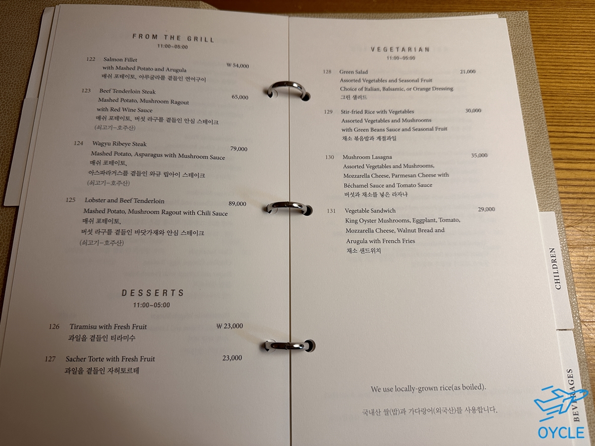 룸서비스도 가능했고 가격은 일반적인 단품메뉴로 3만원부터 스테이크 89,000원까지 있다. 수영하고 하나 주문해서 먹으려다가 바깥에서 흑돼지먹자고 하여 룸서비스를 이용하지는 않았다. 듣기론 그렇게 맛있다고 하던데....