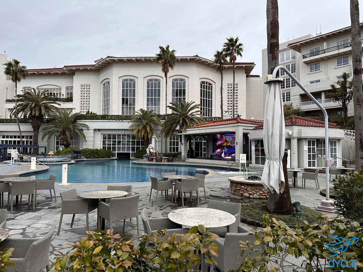 후기 2편에서 훨씬 자세히 다루겠지만 이번에 제주신라호텔에 온 목적중 하나인 수영을 했던 수영장이다. 야외와 실내가 이어져 있는 구조이다.